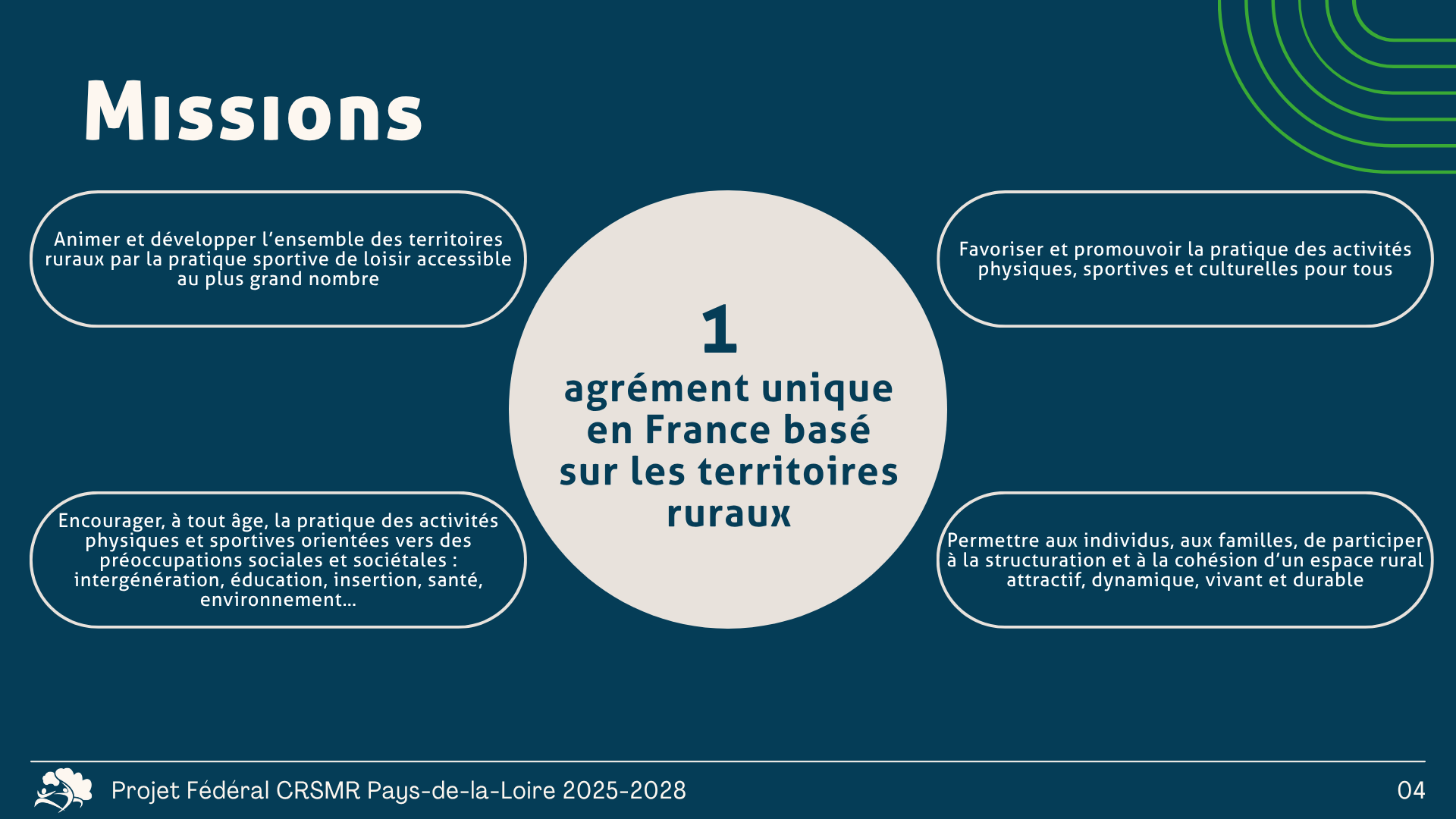 Le Sport Rural Pays-de-la-Loire a pour missions principales :