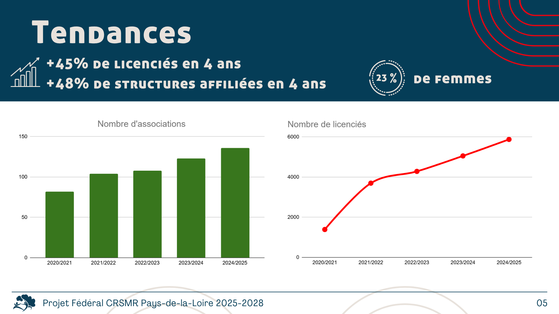 - près de 150 associations sportives affiliées dans les Pays-de-la-Loire